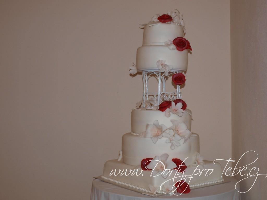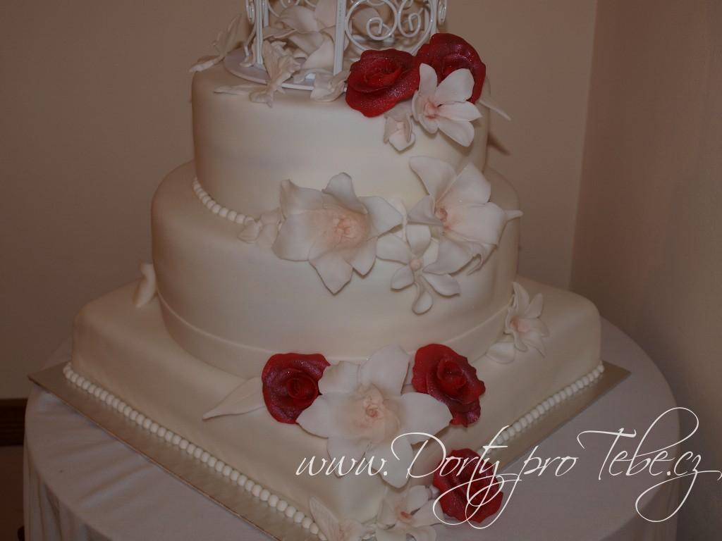 Nevěsta byla spokojená, dort se podařilo sladit s květinovou výzdobou i barevně... už se těším na další takovouto pohodovou práci.